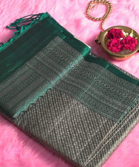 Embrace the delicate fusion of structure and elegance with our Crimson Blossom Checks Soft Silk Border Putta Saree. This exquisite piece features a soft creamy white body adorned with a red-lined checks pattern, creating a harmonious grid of modern sophistication. The border is intricately designed with floral putta motifs, where traditional craftsmanship meets timeless beauty. Crafted from premium soft silk, this saree ensures a graceful drape and a subtle sheen, making it perfect for both grand celebrations and intimate gatherings.