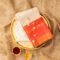 The saree is beautifully framed by an 8-inch double-sided border, which features a unique gap border design. The peacock motifs in a vibrant red color are intricately woven into the border, lending a striking contrast against the soft tones of the body. This combination of gold and red adds depth and richness to the saree, showcasing the skilled craftsmanship of the artisans.